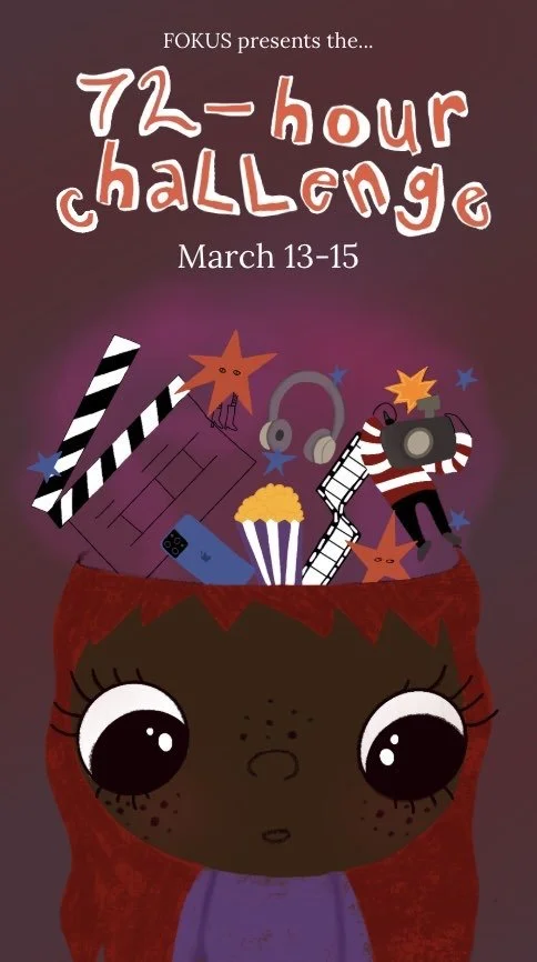 The 72-Hour Filmmaking Challenge is a subsection of the FOKUS Film Festival where participants have 72 hours to write, shoot, and edit a film. Additionally, participants will be given a list of rules (theme, prop, and quote) they must use in their film.